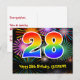 L'avant de cette carte postale à thème d'anniversaire passionnante, amusante et colorée présente un grand nombre "28" avec un motif inspiré d'un dégradé de spectre d'arc-en-ciel, ainsi que le message "Joyeux 28e anniversaire" et un nom de destinataire modifiable. L'avant présente également un motif de fond vibrant et coloré inspiré de l'apparence de feux d'artifice de célébration éclatés. Le verso comporte un message de vœu d'anniversaire personnalisé, ou pourrait éventuellement être effacé et laissé vide si un message doit être écrit à la main à la place. Une carte postale d'anniversaire personnalisable comme celle-ci pourrait être un moyen amusant d'envoyer un message pour célébrer le vingt-huitième anniversaire de quelqu'un. Des cartes postales comme celle-ci pourraient également être utilisées pour inviter des inv