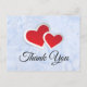 Merci carte postale avec une illustration de 2 coeurs en papier - rouge avec une bordure blanche. Situé sur un élégant arrière - plan en marbre bleu glacé.