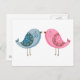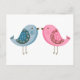 Deux oiseaux doux et adorables, un bleu et un rose.