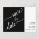 Ces cartes postales de mariage sauvegardent la date avec un style unique et élégant 2 volet avec une calligraphie de script élégante sur la gauche et des détails de texte simple sur la droite. Les couleurs noir et blanc rendent le design à la fois simple et audacieux.