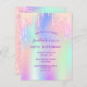 Une invitation à la fête du 30e anniversaire féminine et féminine. Devant : Un arrière - plan de couleur arc-en-ciel en violet, rose, vert menthe, or rose. Décoré avec des gouttes de parties scintillant en violet, rose et faux or. Personnalisez et ajoutez un nom et des détails du parti. Le nom est écrit avec un script de style écrit à la main, des lettres de couleur violette. Dos : couleurs arc-en-ciel et gouttes de parties scintillant faux. Une invitation virtuelle correspondante est disponible dans notre magasin. Conseil : Si vous ne voulez pas qu'il ressemble à une carte postale, cliquez sur customiser, allez à l'arrière et retirez le séparateur et le timbre postal.