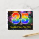 L'avant de cette conception de carte postale thématique d'anniversaire colorée, excitante et amusante présente un grand nombre "35" avec un motif inspiré d'un dégradé de spectre d'arc-en-ciel. Il comporte également le message "Joyeux 35e anniversaire" et un nom de destinataire modifiable. L'avant présente en outre un motif de fond coloré et vibrant de feux d'artifice célébrant l'explosion. Le dos comporte un message de vœux d'anniversaire personnalisable, ou pourrait éventuellement être effacé et laissé vide si un message doit être écrit à la main à la place. Une carte postale d'anniversaire personnalisable comme celle-ci pourrait être un moyen amusant d'envoyer un message pour célébrer le trente-cinquième anniversaire de quelqu'un. Des cartes postales comme celle-ci pourraient également être utilisées pour inviter des invités à une