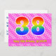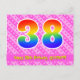 Le devant de cette carte postale joyeuse, amoureuse et joyeuse d'anniversaire comporte un grand numéro "38" avec un motif inspiré par un gradient de spectre arc-en-ciel, ainsi que le message "Happy 38th Birthday", et un nom de destinataire personnalisable. L'avant a en outre un heureux motif rayé rose foncé et rose clair avec des formes cardiaques. Le verso contient un message de voeux d'anniversaire customisé, ou peut-être qu'il peut être effacé et laissé vide si un message doit être écrit à la main à la place. Une carte postale d’anniversaire personnalisable comme celle-ci pourrait être une façon amusante d’envoyer un message pour célébrer le trente-huitième anniversaire de quelqu’un. Des cartes postales comme celle-ci peuvent également être utilisées pour les invités invitations à une fête d'anniversaire ou à une fête organisée pour quelqu'un qui a 38 ans. [~Z0000449]