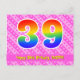 Le devant de cette conception de carte postale thématique d'anniversaire aimante, dynamique et amusante présente un grand nombre "39" avec un motif dégradé de spectre arc-en-ciel. Il comporte également le message "Joyeux 39e anniversaire" et un nom de destinataire personnalisé. Le devant présente en outre un motif joyeux de cœurs et de rayures de couleur rose foncé et rose clair. Le verso comporte un message de vœux d'anniversaire personnalisé, ou pourrait éventuellement être laissé vide si un message doit être écrit à la main à la place. Une carte postale d'anniversaire personnalisée comme celle-ci pourrait être un moyen amusant d'envoyer un message pour célébrer le trente-neuvième anniversaire de quelqu'un. Des cartes postales comme celle-ci pourraient également être utilisées pour inviter des invités à une célébration d'anniversaire ou une fête organisée pour quelqu