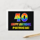 La façade de cette carte postale colorée, amusante et joyeuse à thème d'anniversaire comporte un grand nombre de "40" et le message "HAPPY BANTHDAY", tous deux colorés avec un motif inspiré par un gradient de spectre arc-en-ciel, ainsi qu'un nom de destinataire personnalisable jaune gras. L'avant est également orné d'un arrière - plan de couleur noire minimaliste. Le verso de la carte postale contient un message de voeux d'anniversaire modifiable, ou peut-être peut-être être effacé et laissé vide si un message doit être écrit à la main à la place. Une carte postale d’anniversaire personnalisée et colorée comme celle-ci pourrait être une façon amusante de célébrer le quarantième anniversaire de quelqu’un. [~Z0000474]