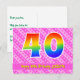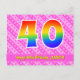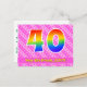L'avant de cette conception de carte postale thématique d'anniversaire aimante, dynamique et amusante présente un grand nombre "40" avec un motif dégradé de spectre arc-en-ciel. Il comporte également le message "Joyeux 40e anniversaire," et un nom de destinataire modifiable. L'avant présente en outre un motif rayé rose foncé et rose clair joyeux avec des formes de cœur. Le verso comporte un message de vœu d'anniversaire personnalisé, ou pourrait éventuellement être effacé et laissé vide si un message doit être écrit à la main à la place. Une carte postale d'anniversaire personnalisée comme celle-ci pourrait être un moyen amusant d'envoyer un message pour célébrer le quarantième anniversaire de quelqu'un. Des cartes postales comme celle-ci pourraient également être utilisées pour inviter des invités à une célébration d'anniversaire ou une fête organis