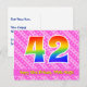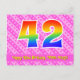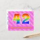 Le recto de cette carte de vœux d'anniversaire au design joyeux, amusant et enjoué présente un grand nombre "42" avec un motif dégradé de spectre arc-en-ciel. Il comporte également le message "Joyeux 42e anniversaire," et un nom de destinataire personnalisé. Le recto présente en outre un motif rayé rose clair et rose foncé joyeux contenant des formes de cœur. Le verso comporte un message de vœux d'anniversaire personnalisé, ou pourrait éventuellement être effacé et laissé vide si un message doit être écrit à la main à la place. Une carte d'anniversaire personnalisée comme celle-ci pourrait être un moyen amusant de célébrer le quarante-deuxième anniversaire de quelqu'un. Des cartes comme celle-ci pourraient également être utilisées pour inviter des invités à une fête d'anniversaire organisée pour quelqu'un qui a 42