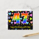 Le recto de cette carte d'anniversaire amusante et excitante présente un grand nombre "47" avec un motif dégradé de spectre arc-en-ciel. Il comporte également le message "Joyeux 47e anniversaire" et un nom de destinataire personnalisé. Le recto comporte en outre un motif vibrant et coloré de cœurs aimants. Le verso comporte un message de vœux d'anniversaire personnalisable, ou pourrait éventuellement être effacé et laissé vide si un message doit être écrit à la main à la place. Une carte d'anniversaire personnalisable comme celle-ci pourrait être un moyen amusant d'envoyer un message pour célébrer le quarante-septième anniversaire de quelqu'un. Des cartes comme celle-ci pourraient également être utilisées pour inviter des invités à une fête ou une célébration d'anniversaire organisée pour quelqu'un qui va avoir 47 ans.