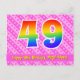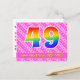 Le recto de cette carte d'anniversaire joyeuse, amusante et affectueuse présente un grand nombre "49" avec un motif dégradé de spectre d'arc-en-ciel, ainsi que le message "Joyeux 49e anniversaire" et un nom de destinataire personnalisé. Le recto comporte également un motif joyeux de cœurs et de rayures roses clair et roses foncés. Le verso comporte un message de vœux d'anniversaire personnalisable, ou pourrait éventuellement être effacé et laissé vide si un message doit être écrit à la main à la place. Une carte d'anniversaire personnalisable comme celle-ci pourrait être un moyen amusant de célébrer le quarante-neuvième anniversaire de quelqu'un. Des cartes comme celle-ci pourraient également être utilisées pour inviter des invités à une fête d'anniversaire ou à une célébration organisée pour quelqu'un qui va avoir