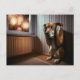 Un chien vacille dans un coin d'une chambre, effrayé par les feux d'artifice lumineux visibles par la fenêtre. Tout le texte peut être modifié.