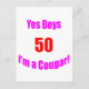 Oui Garçons (50) Je suis un Cougar! Un dessin humoristique de 50ème anniversaire qui fait savoir aux jeunes hommes qu'il y a un cougar dans leur milieu. Fait un grand cadeau de 50e anniversaire pour la femme de 50 ans qui aime les hommes plus jeunes.
