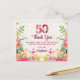 Envoyez une appréciation chaleureuse après un anniversaire marquant avec cette carte postale florale élégante. Doté de fleurs d'aquarelle vives sur un arrière - plan de lin doux avec un audacieux "50", ce design personnalisable est la façon parfaite de remercier les invités et les proches. Bon appétit !