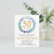 Cette carte postale d'invitation pour votre 50e anniversaire de mariage présente une délicate couronne de verdure fleurie faite de bleuets, de plantes et de fleurs lilas. L'invitation peut être facilement personnalisée avec vos informations spéciales de renouvellement de voeux d'or. Les fournitures et la papeterie de la fête correspondante sont disponibles dans la collection "50e anniversaire de Mariage Bluebells Wreath Cards and Party Supplies".
