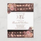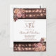 Luminaires à cordes rustiques et fleuris dans une invitation brun rose poussiéreux pour une fête d'anniversaire de 50ème ou n'importe quel âge. Customisez avec votre année d'anniversaire. Élégante police de caractères moderne et élégante.