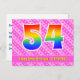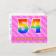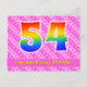 L'avant de cette carte postale thématique d'anniversaire joyeuse, gaie et affectueuse présente un grand nombre "54" avec un motif inspiré d'un dégradé de spectre d'arc-en-ciel, ainsi que le message "Joyeux 54e anniversaire" et un nom de destinataire personnalisé. L'avant présente également des cœurs joyeux rose clair et rose foncé et un motif rayé. Le verso présente un message de vœux d'anniversaire personnalisable, ou pourrait éventuellement être effacé et laissé vide si un message doit être écrit à la main à la place. Une carte postale d'anniversaire personnalisée comme celle-ci pourrait être un moyen amusant d'envoyer un message pour célébrer le cinquante-quatrième anniversaire de quelqu'un. Des cartes postales comme celle-ci pourraient également être utilisées pour inviter des invités à une fête ou une célébration d'ann