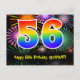 L'avant de cette carte postale à thème d'anniversaire excitante, colorée et amusante présente un grand nombre "56" avec un motif inspiré d'un dégradé de spectre d'arc-en-ciel. Elle comporte également le message "Joyeux 56e anniversaire" et un nom de destinataire personnalisable. L'avant présente en outre un motif de fond vibrant et coloré inspiré de feux d'artifice de célébration qui éclatent. Le dos comporte un message de vœux d'anniversaire personnalisable, ou pourrait éventuellement être effacé et laissé vide si un message doit être écrit à la main à la place. Une carte postale d'anniversaire personnalisée comme celle-ci pourrait être une façon amusante de célébrer le cinquante-sixième anniversaire de quelqu'un. Des cartes postales comme celle-ci pourraient également être utilisées pour inviter des invités à une fête d'anniversaire