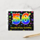 L'avant de cette conception de carte postale thématique d'anniversaire passionnante, colorée et amusante présente un grand nombre "56" avec un motif inspiré d'un dégradé de spectre arc-en-ciel. Elle comporte également le message "Joyeux 56e Anniversaire" et un nom de destinataire personnalisé. L'avant comporte en outre un fond coloré et vibrant avec un motif de formes d'étoiles. Le verso comporte un message de vœu d'anniversaire personnalisé, ou pourrait éventuellement être effacé et laissé vide si un message doit être écrit à la main à la place. Une carte postale d'anniversaire personnalisée comme celle-ci pourrait être un moyen amusant d'envoyer un message pour célébrer le cinquante-sixième anniversaire de quelqu'un. Des cartes postales comme celle-ci pourraient également être utilisées pour inviter des invités à une fête ou à une célébration
