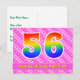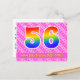 L'avant de cette conception de carte postale thématique d'anniversaire joyeuse, dynamique et heureuse comporte un grand nombre "56" avec un motif inspiré d'un dégradé de spectre d'arc-en-ciel, ainsi que le message "Joyeux 56e Anniversaire," et un nom de destinataire modifiable. L'avant présente également un motif rayé rose foncé et rose clair joyeux avec des formes de cœur. Le verso comporte un message de vœu d'anniversaire personnalisable, ou pourrait éventuellement être effacé et laissé vide si un message doit être écrit à la main à la place. Une carte postale d'anniversaire personnalisée comme celle-ci pourrait être un moyen amusant d'envoyer un message pour célébrer le cinquante-sixième anniversaire de quelqu'un. Des cartes postales comme celle-ci pourraient également être utilisées pour inviter des invités à une fête d'anniversaire