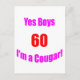 Oui Garçons (60) Je suis un Cougar! Un dessin humoristique du 60e anniversaire qui fait savoir aux jeunes hommes qu'il y a un cougar en leur sein. Fait un grand cadeau de 60e anniversaire pour la femme de 60 ans qui aime les hommes plus jeunes.