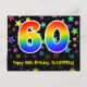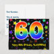 Le devant de cette carte d'anniversaire amusante, excitante et colorée présente un grand nombre "60" avec un motif dégradé de spectre arc-en-ciel. Il comporte également le message "Joyeux 60e anniversaire," et un nom de destinataire modifiable. Le devant comporte en outre un motif de fond en forme d'étoile coloré et vibrant. Le verso comporte un message de vœux d'anniversaire personnalisé, ou pourrait éventuellement être effacé et laissé vide si un message doit être écrit à la main à la place. Une carte d'anniversaire personnalisable comme celle-ci pourrait être un moyen amusant de reconnaître les soixante ans de quelqu'un. Des cartes comme celle-ci pourraient également être utilisées pour inviter des invités à une célébration d'anniversaire ou une fête organisée pour quelqu'un qui a 60 ans.
