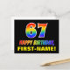 La façade de cette carte postale joyeuse, colorée et amusante à thème d'anniversaire comporte un grand nombre de "67" et le message "HAPPY BANTHDAY", tous deux colorés avec un motif inspiré du gradient de spectre arc-en-ciel, ainsi qu'un nom de destinataire personnalisé jaune gras. L'avant est également orné d'un arrière - plan simple, minimal et noir. Le dos de la carte postale contient un message d'anniversaire personnalisé, ou peut-être peut-être effacé et laissé vide si un message doit être écrit à la main à la place. Une carte postale d’anniversaire personnalisée et dynamique comme celle-ci pourrait être une façon amusante d’envoyer un message célébrant le soixante-septième anniversaire de quelqu’un. [~Z0000474]