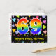 Carte Postale 69e anniversaire : motif de cœurs amusants, arc-en
