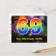 Carte Postale 69e Anniversaire – Motif de feux d'artifice amusan