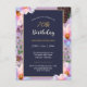 Carton d'invitation Fleurie Fête pour votre fête d'anniversaire de 70 ans combine fond bleu sombre crépusculaire pour un texte facilement lisible avec des fleurs de devant lumineuses pleines de soleil printanier.
