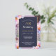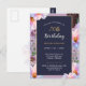 Carton d'invitation Fleurie Festive pour votre fête de 70e anniversaire combinant un fond bleu crépusculaire sombre pour un texte facilement lisible avec des fleurs de devant lumineuses pleines de soleil printanier.