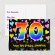 L'avant de cette carte postale thématique d'anniversaire colorée, amusante et affectueuse présente un grand nombre "70" avec un motif à dégradé de spectre arc-en-ciel. Elle comporte également le message "Joyeux 70e anniversaire" et un nom de destinataire personnalisé. L'avant présente en outre un motif de fond de cœurs affectueux vibrant et coloré. Le verso comporte un message de vœux d'anniversaire personnalisé, ou pourrait éventuellement être laissé vierge si un message doit être écrit à la main à la place. Une carte postale d'anniversaire personnalisée comme celle-ci pourrait être un moyen amusant d'envoyer un message pour célébrer le soixante-dixième anniversaire de quelqu'un. Des cartes postales comme celle-ci pourraient également être utilisées pour inviter des invités à une fête d'anniversaire organisée pour quelqu'un qui a 70 ans.