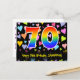 L'avant de cette conception de carte postale thématique d'anniversaire, colorée et amusante, présente un grand nombre "70" avec un motif dégradé à spectre arc-en-ciel. Elle comporte également le message "Joyeux 70e anniversaire" et un nom de destinataire personnalisé. L'avant présente en outre un motif de fond de cœurs aimants vibrant et coloré. Le verso comporte un message de vœux d'anniversaire personnalisé, ou pourrait éventuellement être laissé vierge si un message doit être écrit à la main à la place. Une carte postale d'anniversaire personnalisée comme celle-ci pourrait être un moyen amusant d'envoyer un message pour célébrer le soixante-dixième anniversaire de quelqu'un. Des cartes postales comme celle-ci pourraient également être utilisées pour inviter des invités à une fête d'anniversaire organisée pour quelqu'un qui a 70 ans.