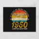 Carte Postale 75 ans 1950 Rétro Incroyable Cadeau pour 75e Anniv