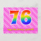 Le recto de cette carte de vœux d'anniversaire au design joyeux, amusant et affectueux présente un grand nombre "76" avec un motif inspiré d'un dégradé de spectre d'arc-en-ciel, ainsi que le message "Joyeux 76e anniversaire" et un nom de destinataire personnalisé. Le recto présente en outre un motif joyeux composé de cœurs et de rayures roses clair et roses foncé. Le verso présente un message de vœux d'anniversaire personnalisé, ou pourrait éventuellement être laissé vide si un message doit être écrit à la main à la place. Une carte de vœux d'anniversaire personnalisée comme celle-ci pourrait être un moyen amusant d'envoyer un message pour célébrer le soixante-seizième anniversaire de quelqu'un. Des cartes postales comme celle-ci pourraient également être utilisées pour inviter des invités à une fête ou à