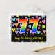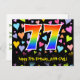 Carte Postale 77e anniversaire : motif de cœurs amusants, arc-en