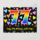 L'avant de cette conception de carte postale d'anniversaire aimante, amusante et excitante comporte un grand nombre "77" avec un motif inspiré d'un dégradé de spectre d'arc-en-ciel, ainsi que le message "Joyeux 77e anniversaire" et un nom de destinataire personnalisable. L'avant présente également un fond vibrant et coloré avec un motif de cœurs aimants. Le dos comporte un message de vœux d'anniversaire personnalisé, ou pourrait éventuellement être effacé et laissé vide si un message doit être écrit à la main à la place. Une carte postale d'anniversaire personnalisée comme celle-ci pourrait être un moyen amusant d'envoyer un message pour célébrer le soixante-dix-septième anniversaire de quelqu'un. Des cartes postales comme celle-ci pourraient également être utilisées pour inviter des invités à une fête d'anniversaire organisée pour quelqu