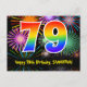 Carte Postale 79e Anniversaire – Motif de feux d'artifice amusan