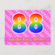 L'avant de cette carte de vœux d'anniversaire au design joyeux, gai et amusant présente un grand nombre "88" avec un motif à dégradé de spectre arc-en-ciel. Il comporte également le message "Joyeux 88e Anniversaire" et un nom de destinataire modifiable. L'avant présente en outre un motif rayé rose clair et rose foncé avec des formes de cœur. Le verso comporte un message de vœux d'anniversaire personnalisable, ou pourrait éventuellement être effacé et laissé vide si un message doit être écrit à la main à la place. Une carte de vœux d'anniversaire personnalisable comme celle-ci pourrait être un moyen amusant d'envoyer un message pour célébrer le quatre-vingt-huitième anniversaire de quelqu'un. Des cartes postales comme celle-ci pourraient également être utilisées pour inviter des invités à une fête d'annivers