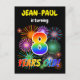 La façade de cette carte postale d'invitation de fête d'anniversaire animée et dynamique a un nom modifiable, un amusant feu d'artifice de fête inspiré motif, et le message "8 ans OLD!" avec un spectre coloré arc-en-ciel inspiré motif dégradé. Le verso comporte un message personnalisable qui pourrait décrire le moment et l'endroit où la partie est tenue, en plus d'autres informations pertinentes. Des cartes postales d’invitation comme celle-ci pourraient être envoyées aux invités potentiels d’une fête d’anniversaire organisée pour célébrer le huitième anniversaire de quelqu’un. [~Z0000452]