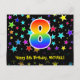 Carte Postale 8e Anniversaire : motif d'étoiles amusantes, arc-e