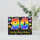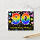L'avant de cette conception de carte postale thématique d'anniversaire colorée, amusante et excitante présente un grand nombre "90" avec un motif dégradé de spectre arc-en-ciel. Elle comporte également le message "Joyeux 90e Anniversaire" et un nom de destinataire personnalisé. L'avant présente en outre un motif de fond de cœurs aimants vibrant et coloré. Le dos comporte un message de vœux d'anniversaire personnalisable, ou pourrait éventuellement être effacé et laissé vide si un message doit être écrit à la main à la place. Une carte postale d'anniversaire personnalisable comme celle-ci pourrait être un moyen amusant d'envoyer un message pour célébrer le quatre-vingt-dixième anniversaire de quelqu'un. Des cartes postales comme celle-ci pourraient également être utilisées pour inviter des invités à une célébration d'anniversaire ou une fête