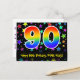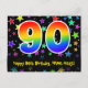 L'avant de cette conception de carte postale d'anniversaire amusante, colorée et excitante présente un grand nombre "90" avec un motif dégradé de spectre arc-en-ciel. Il comporte également le message "Joyeux 90e anniversaire" et un nom de destinataire modifiable. L'avant présente en outre un motif coloré et vibrant de formes d'étoiles. Le verso comporte un message de vœux d'anniversaire modifiable, ou pourrait éventuellement être effacé et laissé vide si un message doit être écrit à la main à la place. Une carte postale d'anniversaire personnalisable comme celle-ci pourrait être un moyen amusant de célébrer le quatre-vingt-dixième anniversaire de quelqu'un. Des cartes postales comme celle-ci pourraient également être utilisées pour inviter des invités à une célébration d'anniversaire ou à une fête organisée pour quelqu'un qui a