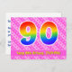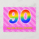 Le devant de cette conception de carte postale d'anniversaire aimante, dynamique et amusante comporte un grand nombre "90" avec un motif inspiré d'un dégradé de spectre d'arc-en-ciel, ainsi que le message "Joyeux 90e anniversaire" et un nom de destinataire modifiable. Le devant comporte en outre un motif rayé rose clair et rose foncé joyeux avec des formes de cœur. Le verso comporte un message de vœux d'anniversaire personnalisé, ou pourrait éventuellement être effacé et laissé vide si un message doit être écrit à la main à la place. Une carte postale d'anniversaire personnalisée comme celle-ci pourrait être un moyen amusant d'envoyer un message pour célébrer le quatre-vingt-dixième anniversaire de quelqu'un. Des cartes postales comme celle-ci pourraient également être utilisées pour inviter des invités à une célébration d'annivers