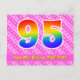 L'avant de cette conception de carte postale d'anniversaire joyeuse, aimante et dynamique présente un grand nombre "95" avec un motif dégradé de spectre arc-en-ciel. Elle comporte également le message "Joyeux 95e Anniversaire" et un nom de destinataire personnalisable. L'avant présente en outre un motif rayé rose clair et rose foncé joyeux avec des formes de cœur. Le verso comporte un message de vœux d'anniversaire personnalisé, ou pourrait éventuellement être effacé et laissé vierge si un message doit être écrit à la main à la place. Une carte postale d'anniversaire comme celle-ci pourrait être un moyen amusant d'envoyer des vœux d'anniversaire à quelqu'un qui célèbre son quatre-vingt-quinzième anniversaire. Des cartes postales comme celle-ci pourraient également être utilisées pour inviter des invités à une célébration
