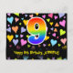 Carte Postale 9e anniversaire : motif de cœurs amusants, arc-en-