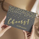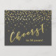 Nouvelle carte Lane - Carte postale glamour, avec 'Tchin-tchin pour 50 ans !' en typographie élégante de type pinceau/écriture manuscrite en or faux, avec des confettis dorés sur un fond gris foncé. Design amusant et élégant pour n'importe quel anniversaire, puisque vous pouvez facilement modifier l'âge pour un design personnalisé. Les styles de texte et la couleur de fond peuvent être modifiés pour répondre à vos besoins.