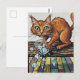Carte Postale A ginger cat knocks over a glass of ice