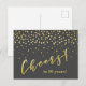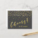 NouvelleAlléeParc - Carte postale glamour, avec 'Tchin tchin pour 50 ans !' en typographie élégante pinceau/écriture manuscrite en or faux, avec des confettis dorés sur fond gris foncé. Design amusant et élégant pour n'importe quel anniversaire, puisque vous pouvez facilement modifier l'âge pour un design personnalisé. Les styles de texte et la couleur de fond peuvent être modifiés pour répondre à vos besoins.