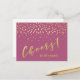 Nouvelle carte Lane - Carte postale glamour, avec 'Tchin-tchin à 40 ans !' en typographie élégante de type pinceau/écriture manuscrite en or faux, avec des confettis dorés sur fond rose framboise. Design amusant et élégant pour tout anniversaire marquant, puisque vous pouvez facilement modifier l'âge pour un design personnalisé. Les styles de texte et la couleur de fond peuvent être modifiés pour répondre à vos besoins.