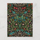 Une carte postale avec le motif de William Morris (1834-1896), intitulé Blackthorn (1892). Une prairie de fleurs, composée de violettes bleues, de marguerites jaunes et de fritillaires rouges sur un fond de buisson d'aubépine blanche en fleurs.