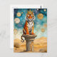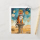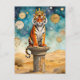 gorgeous tiger wearing a crown sitting on a stone column in the desert